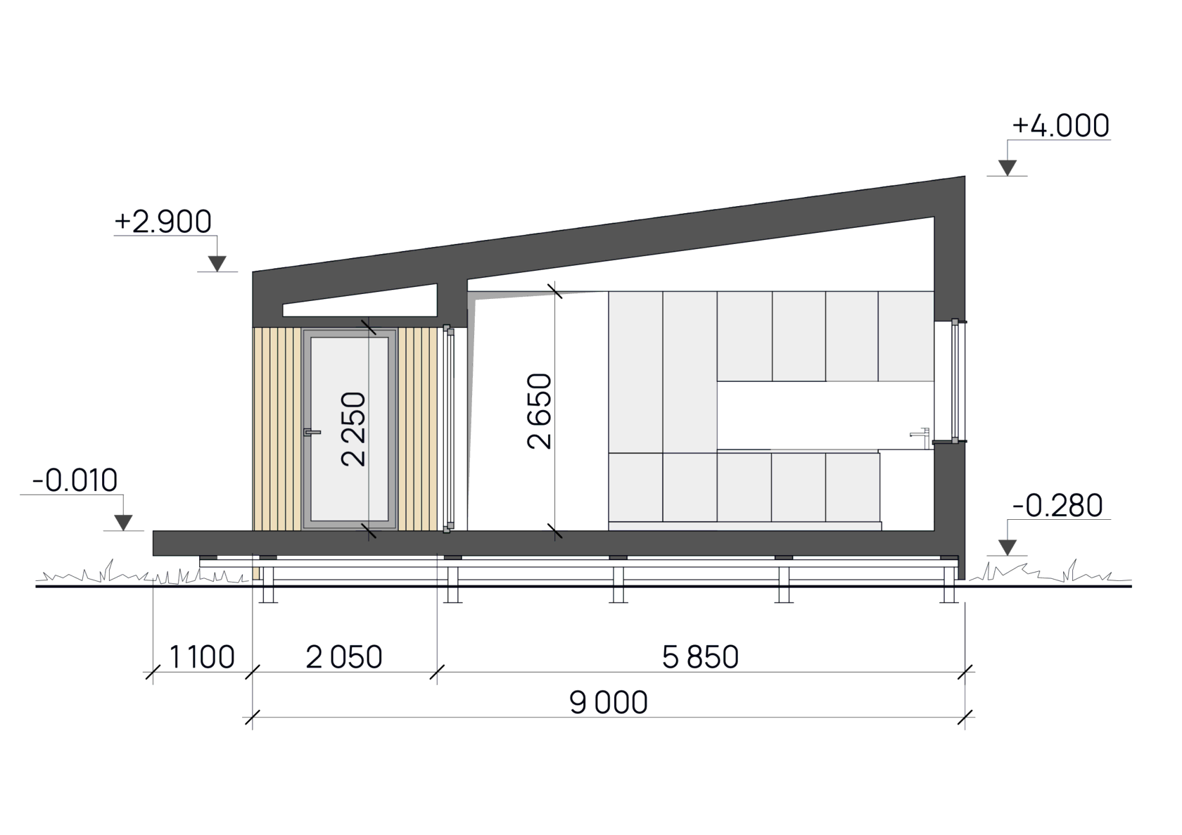 Конструкции модулей предполагают заводское изготовление. Инженерные сети проложены в пространстве панелей стен и перекрытий, на площадке выполняется только сборка и подключение.